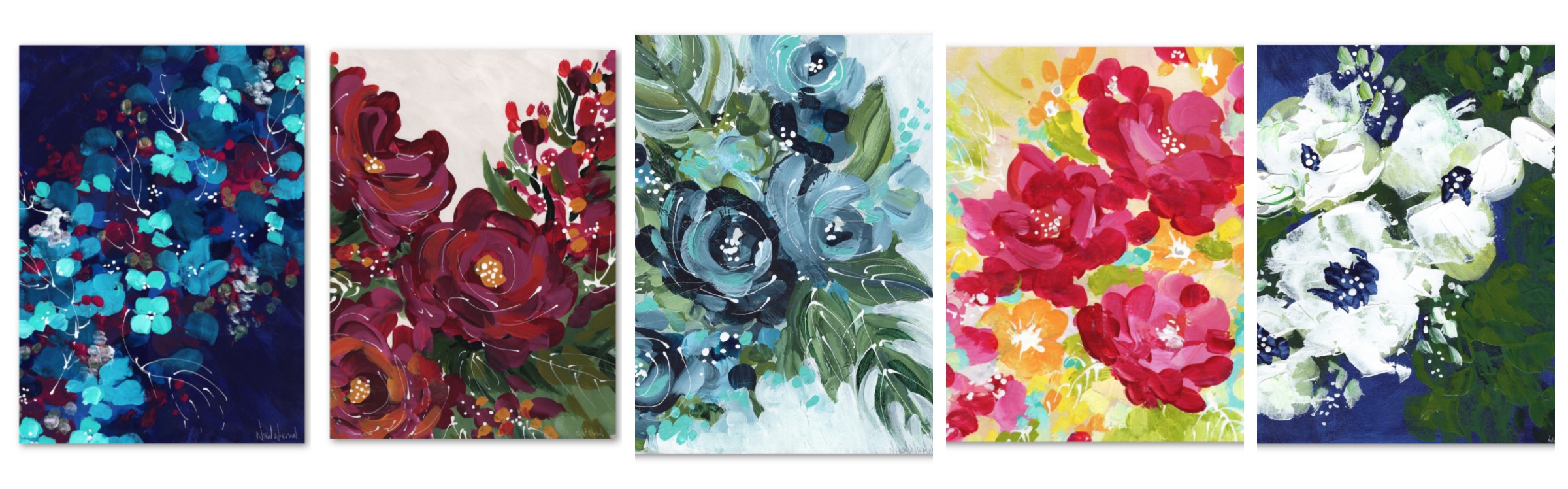 Hello Spring we will complete 5 unique projects. In each one I will share, step by step, my process for creating beautiful florals with acrylics. Each project is under 40 minutes long…short and sweet. I created this class with ease in mind…I want you to have fun in the studio, just like I do!